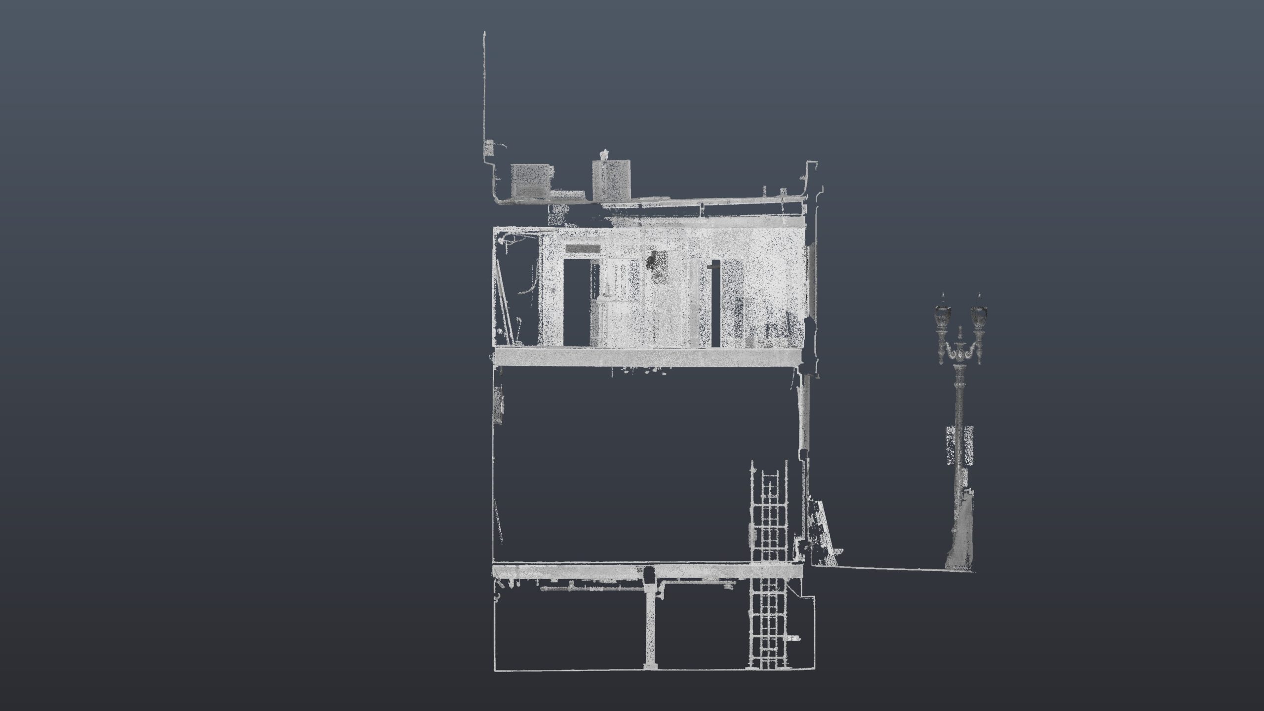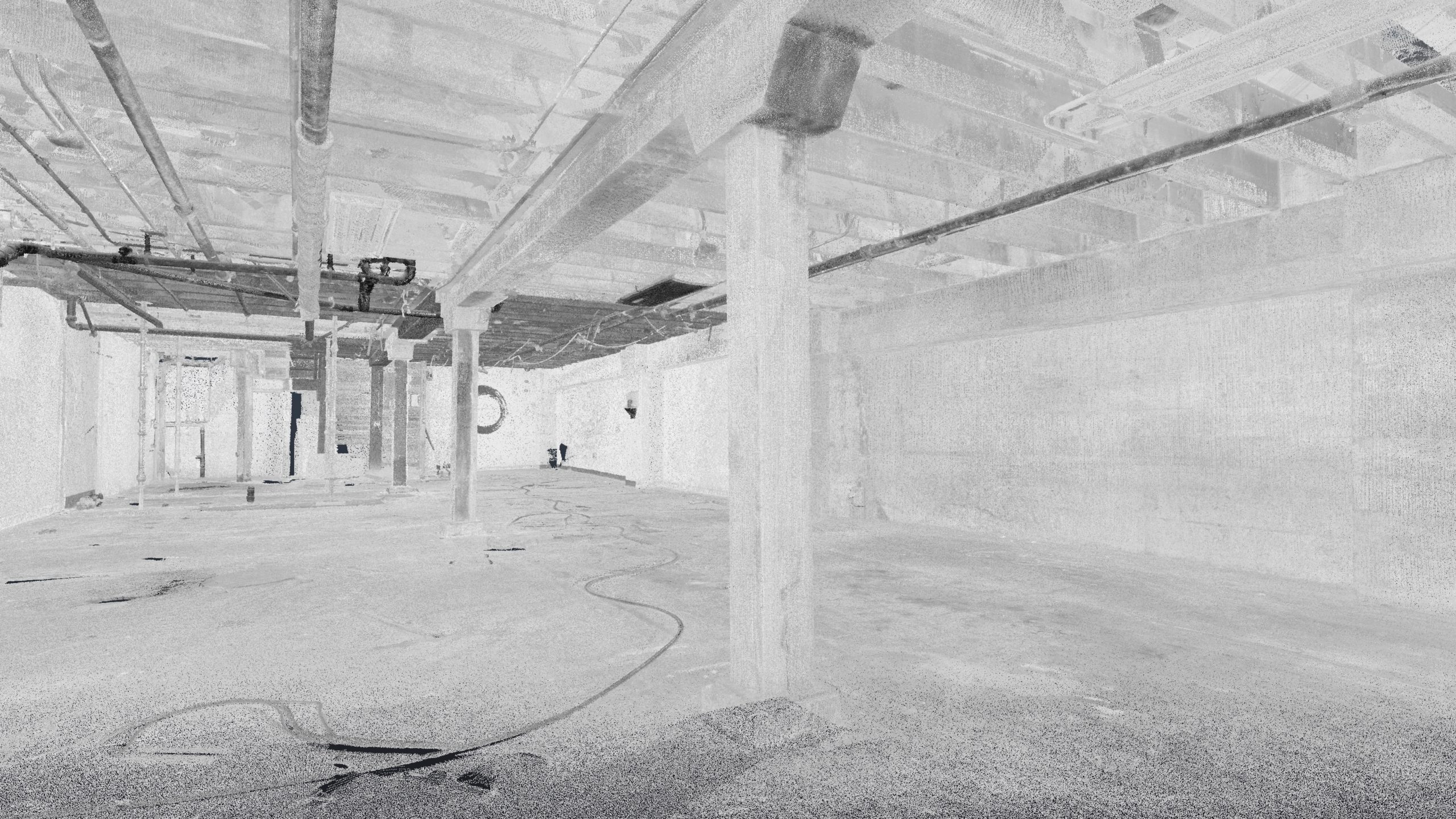 Our initial scope of work goal was to support seismic retrofitting of the wood structural beams in the basement (which were replaced with steel) and provide as-built conditions of the building interior (basement, first and second floors), exterior walls, and rooftop. However, review of scan data immediately showed that the walls and floors of the building were not plumb.