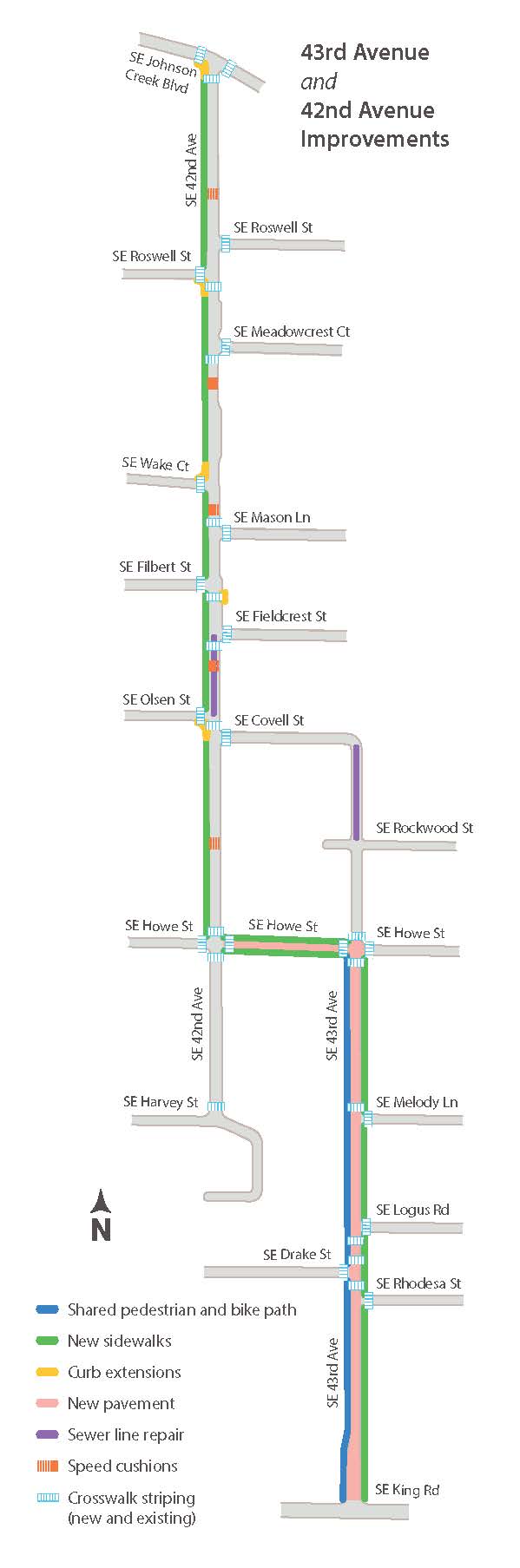 The City of Milwaukie recently invested in infrastructure improvements to 42nd and 43rd Avenues, ranging from general infrastructure to quality-of-life improvements for neighborhood residents. These efforts are part of a larger city-wide program called SAFE (Safe Access for Everyone), which was created with the intent of upgrading Milwaukie’s transportation infrastructure for ease-of-use and accessibility.