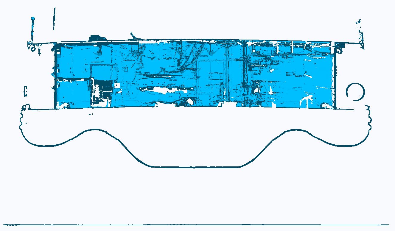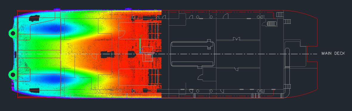 In 2020, additional modifications will be made to the Dredge’s hull. The precise data obtained during scanning will help support these changes. In this project, the stern of the barge will be removed and replaced with a larger section. The new stern section will need to match the existing hull as accurately as possible and our scanning data will get measurements as close as possible. Additional adjustments will be made to the discharge pipes attached to the stern as well as the interior. Scanning is unique in that it captures complex hull shapes, aiding in design and prefabrication, while providing clients with time and cost savings.