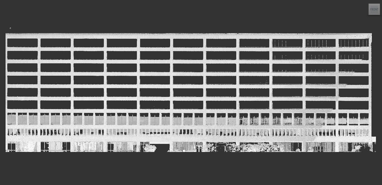 Our team provided a laser scan to help support Andersen Construction with the installation of a curtain wall on the exterior of the 9-story building. The new curtain wall façade was installed 3 feet from the existing concrete walls with spacing brackets holding the new façade in place. Laser scanning helped determine precise distances between the original concrete walls, which were uneven, and the new façade for the fabrication of the installation brackets and façade panels.