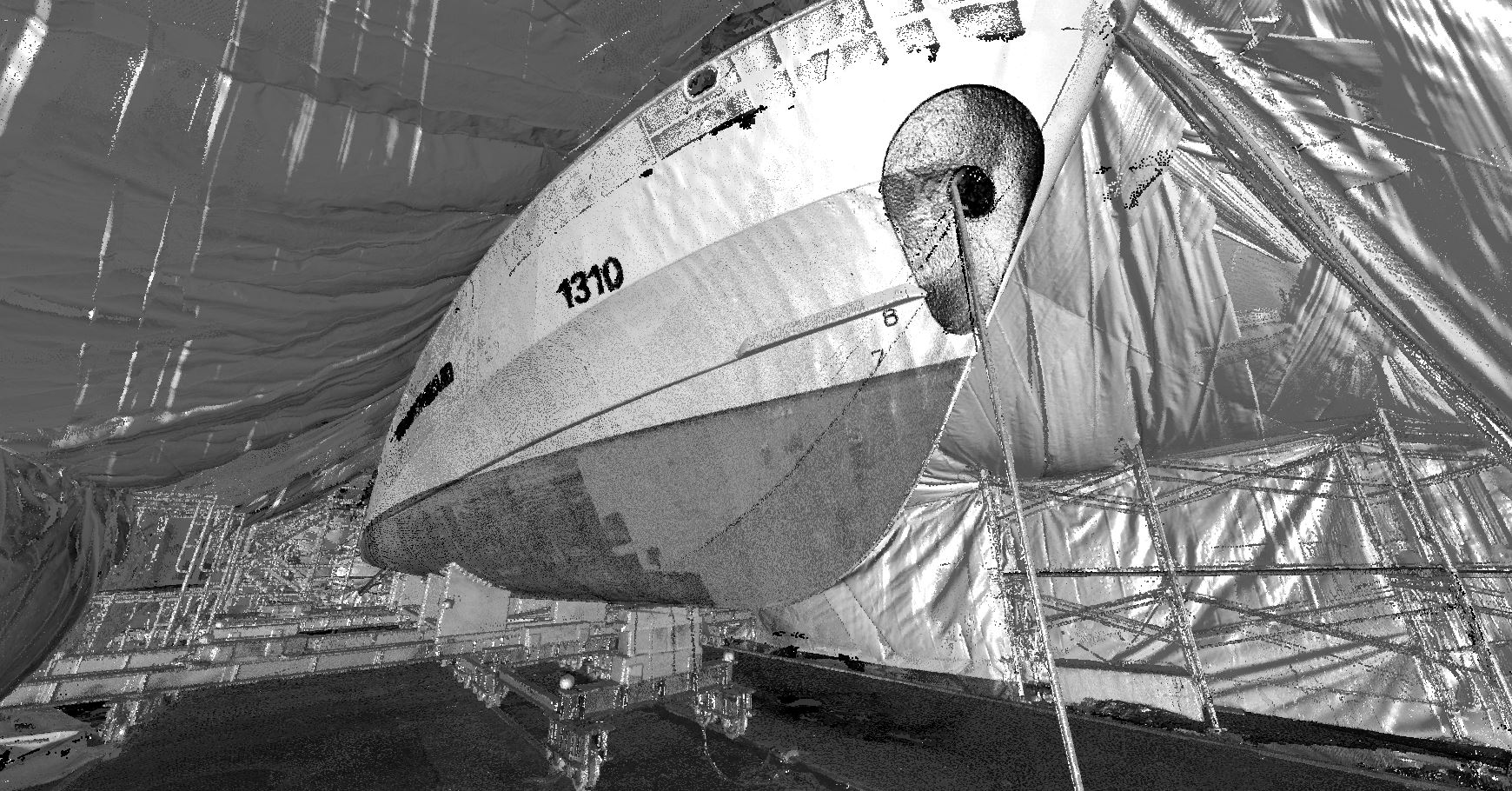 For one recent project, Westlake’s scanning crew traveled to Alaska to scan the USCGC ‘Mustang’. Our objective was to collect data pertaining to the hull, deck, shaft and shaft struts, and other ship components. Data from 28 scans provided information to be analyzed for deformation analysis and possible modification of the vessel design.