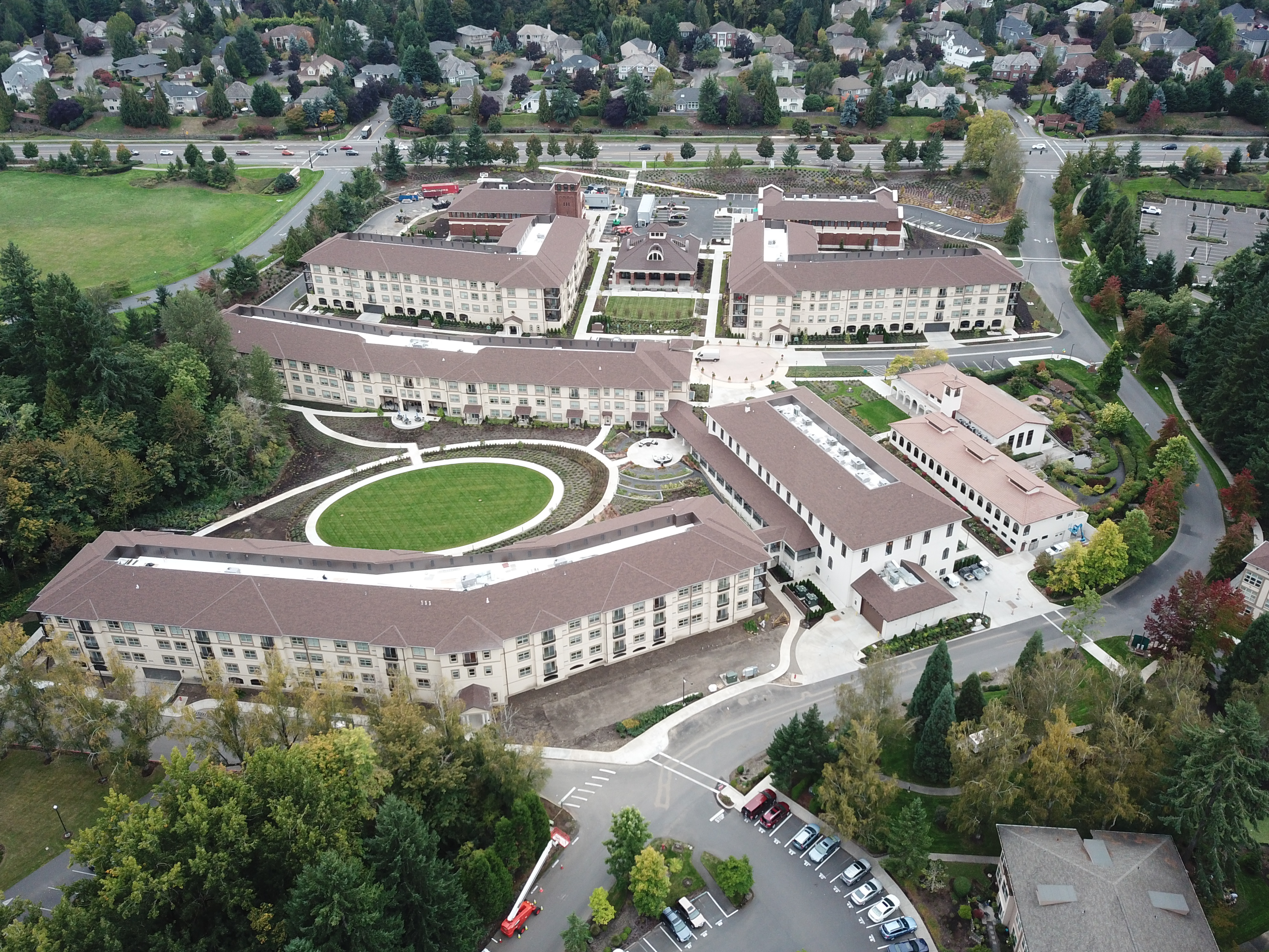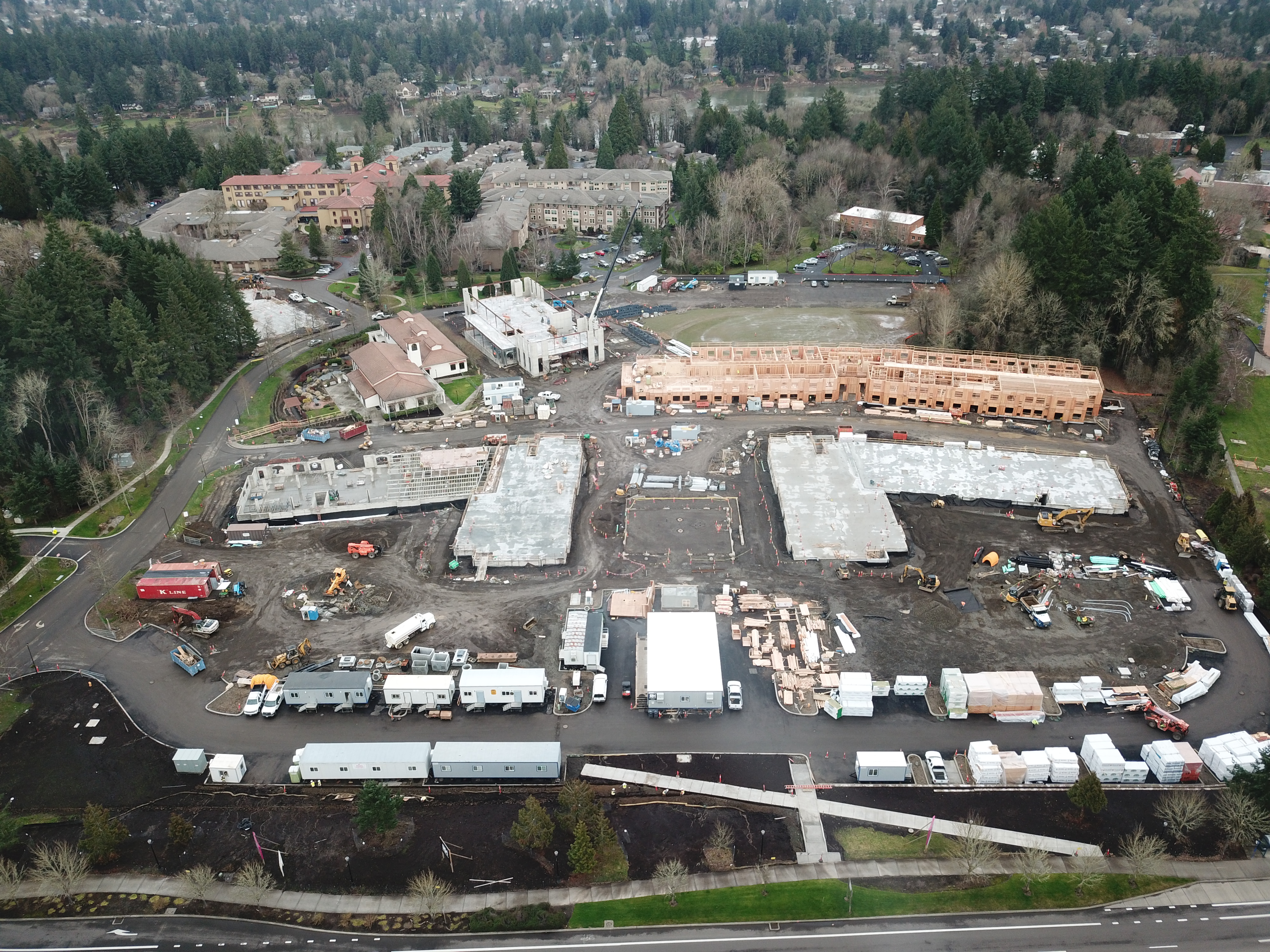 Built as a phased project, Westlake first provided surveying services for Martin Way and Rosecliff Drive, followed by construction surveying for the residential and amenities buildings. Combined, the nine structures of The Village at Mary’s Woods total over 422,000 square feet. Central to creating the ‘village’ atmosphere of the development is the 65-foot belltower, evoking the feel of a town square. Architectural detail was designed to match the look of the historic Provincial House, built in 1910, which sits on the east side of the Mary’s Woods property. This expansion effort was recognized by the Daily Journal of Commerce in 2020, receiving a Top Project first place honor (senior living category) .